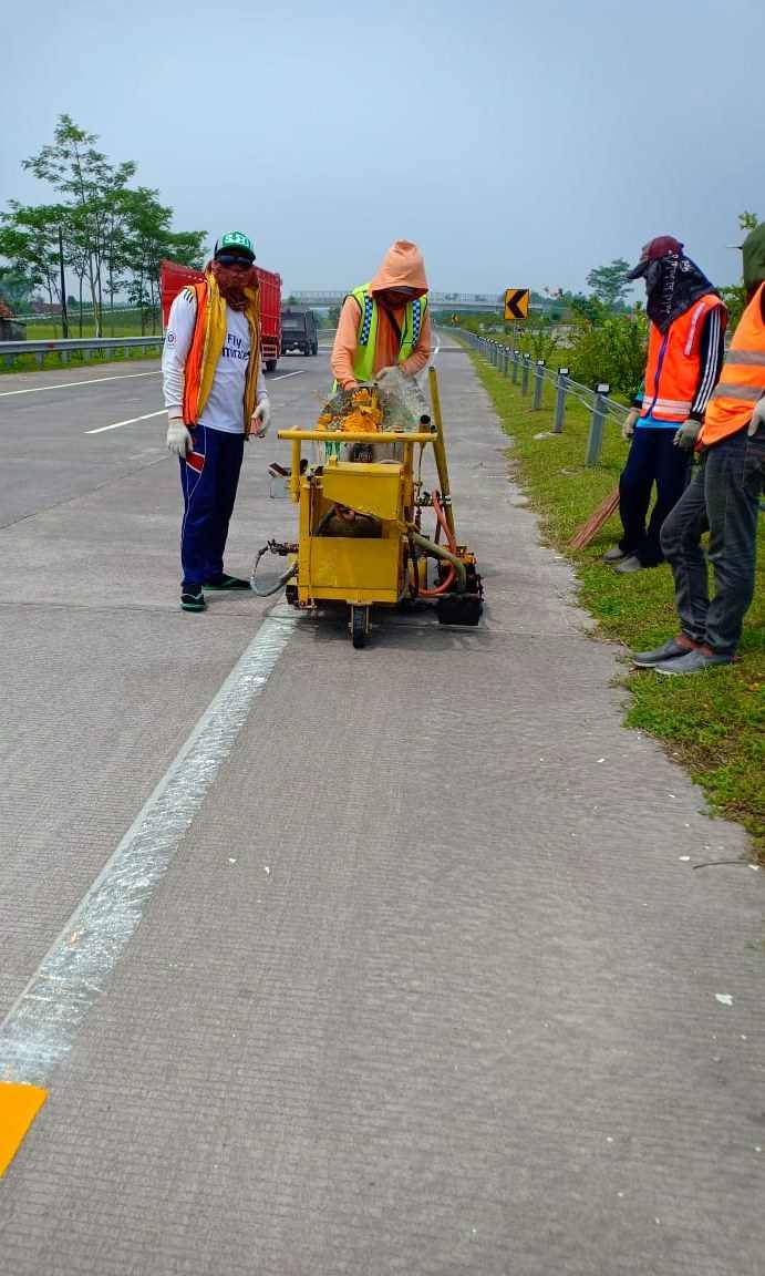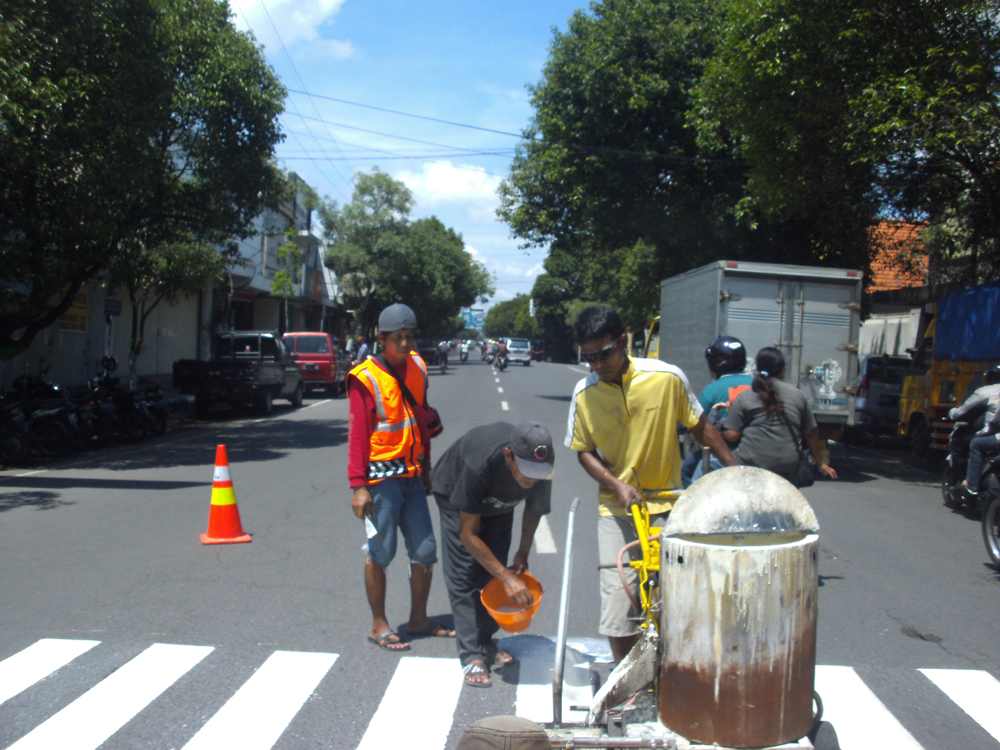 Proses Pengecatan Marka Jalan